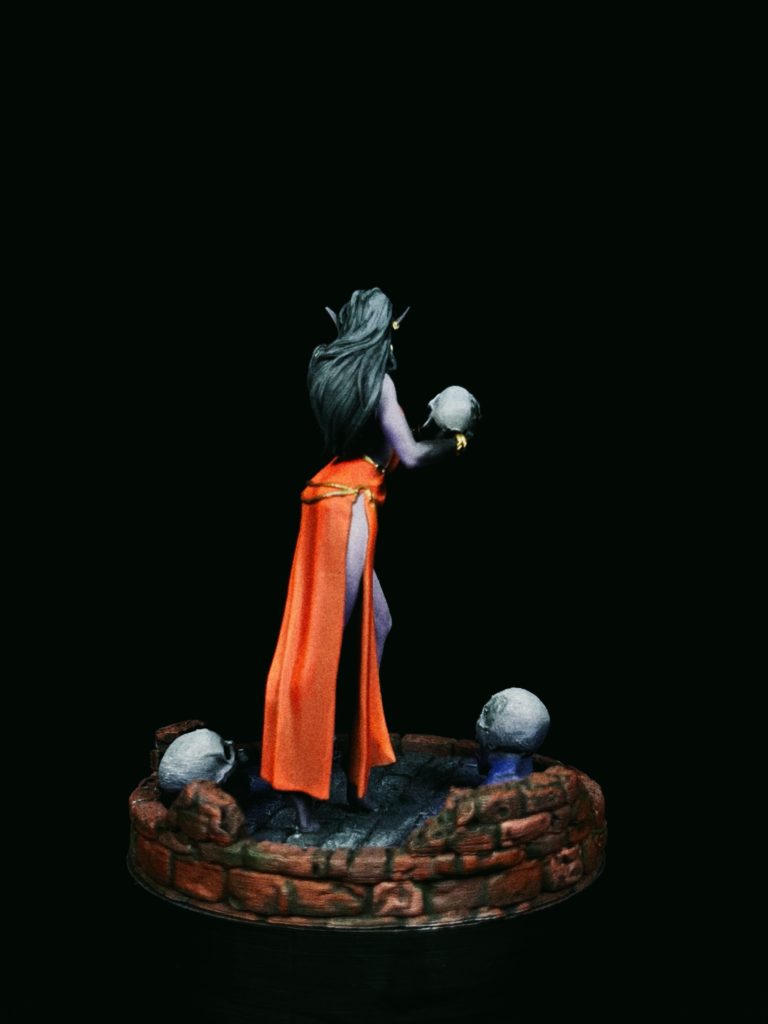 “She Who Binds the Restless” is my take on a necromancer mid-ritual. Not frantic. Not theatrical. Calm. Focused. In control. The kind of control that doesn’t need to shout.